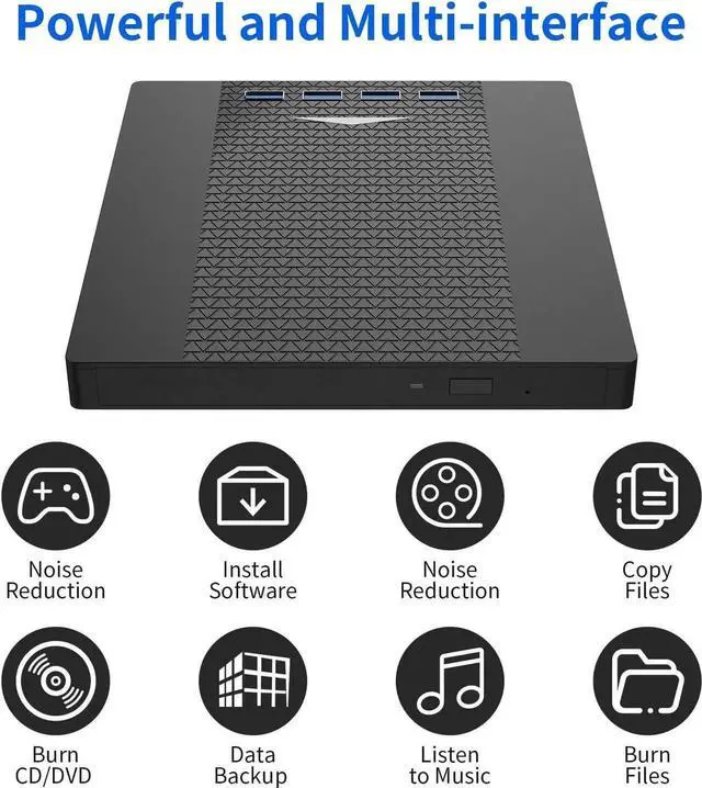 ![Alt view image 4 of 7 - [7 in 1] Multifunction External CD/DVD Drive for Laptop, USB 3.0 & Type C DVD Player CD ROM Portable CD/DVD Burner, External DVD Drive Compatible with Laptop Desktop PC Windows 11/10/8/7 Linux MacOS](https://c1.neweggimages.com/productimage/nb640/C601S2604100K5UY54D.jpg)