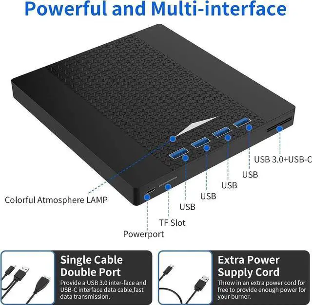 ![Alt view image 7 of 7 - [7 in 1] Multifunction External CD/DVD Drive for Laptop, USB 3.0 & Type C DVD Player CD ROM Portable CD/DVD Burner, External DVD Drive Compatible with Laptop Desktop PC Windows 11/10/8/7 Linux MacOS](https://c1.neweggimages.com/productimage/nb640/C601S2604100K5V0D68.jpg)