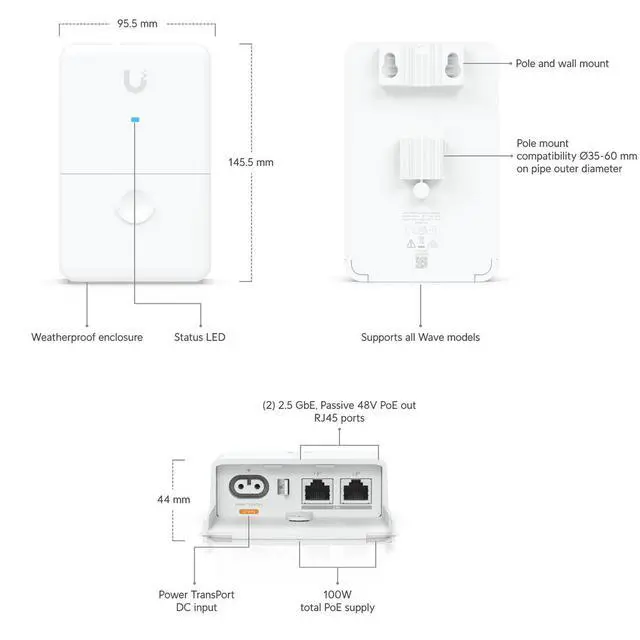 WIDE COMPATIBILITY - Designed to work seamlessly with various Ubiquiti Wave devices, including Wave AP, Wave AP Micro, Wave Long-Range, Wave Nano, Wave Pro, and Wave Pico, ensuring broad application.