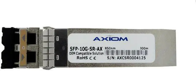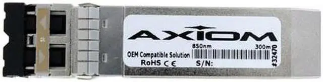 Axiom SFP+ Transceiver Modules are certified 100% compliant in all OEM applications. They are pre-configured with an application specific code to meet the requirement set forth by the router and switch OEMs. Axiom compatible transceivers perform fit and function identically when compared to "Original" Transceivers. Our transceivers fully comply with the multi-sourcing agreement (MSA) which enables them to work in all MSA compliant platforms. Axiom brand transceivers also function with other brands within the same network. 100% Guaranteed Compatibility Part number and unique product serialization; Eliminates any network communication conflicts and provides easy identification Fully comply with the multi-sourcing agreement (MSA) which enables them to work in all MSA compliant platforms Original Equipment Manufacturer (OEM) ® names may be registered trademarks of the respective OEM and the OEM has neither authorized nor sponsored the use of its trademark or trade name.