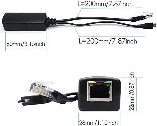 Output: 5VDC 2.4A 12W; RJ-45 maleDC jack Micro USB Length of Micro