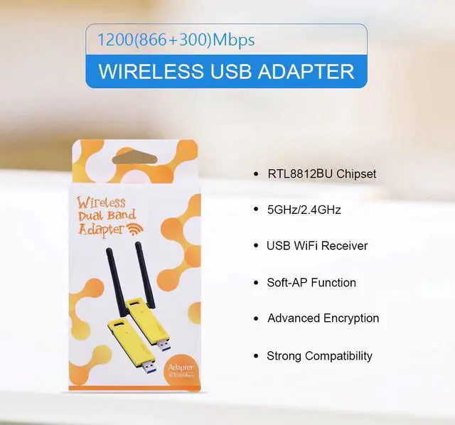 Wifi Adapter 1200mbps Dual Band 5Ghz 2.4Ghz Adapter 802.11ac RTL8812BU Chipset Aerial Dongle Mini USB Network Card PC