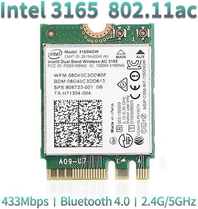 Weastlinks Dual Band Wireless-AC 3165NGW For Intel 3165 M.2 NGFF 802.11ac WiFi WLAN Network Card 433Mbps 2.4G/5Ghz Bluetooth 4.0 Windows