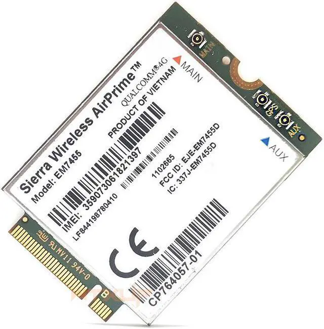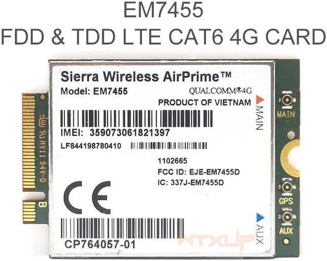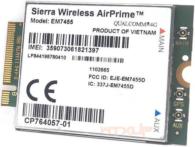 The Sierra Wireless EM7455 Embedded Module is an LTE Cat 6 M.2 module that provides LTE, UMTS, and GNSS connectivity for notebook, ultrabook, tablet computers.
