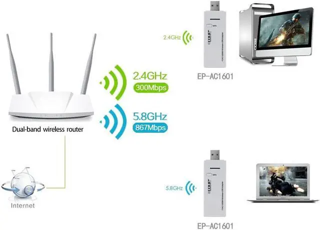 • Frequency 2.4GHz / 5GHz,Transmission speed 2.4GHz up to 300Mbps and 5GHz up to 867Mbps.
