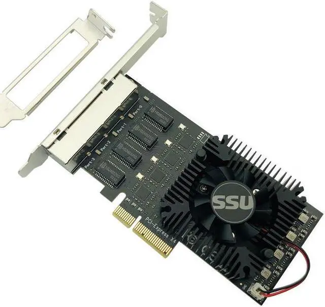 Weastlinks 2.5Gb Ethernet PCIE 4 Port Network Card Adapter 2.5Gbps PCI Express X4 RTL8125B Chip RJ45 2500Mbps LAN Card with Cooling Fan