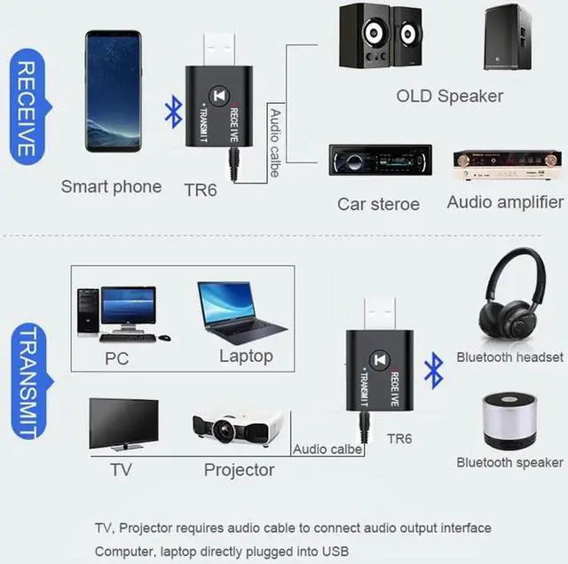 1. In Transmitter mode, turn a non-Bluetooth TV, PC, CD player, for iPod, MP3 / MP4 into Bluetooth transmitter. Receiver mode: Ideal for home or vehicle music streaming sound system.