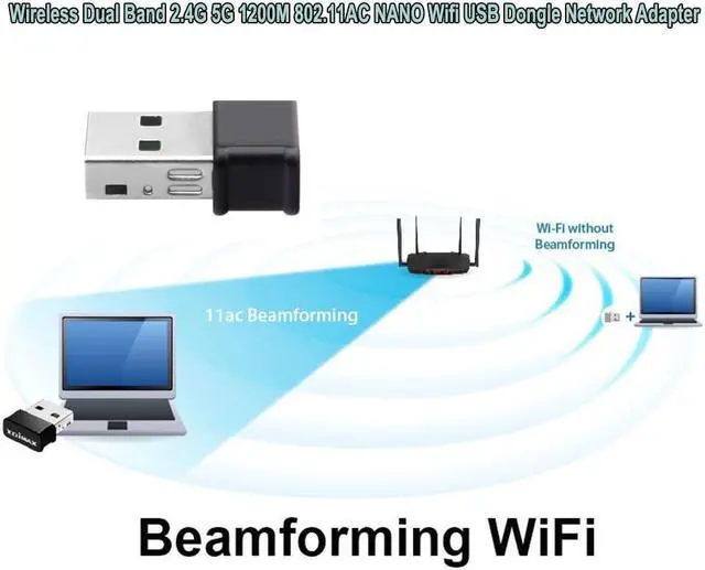 Wireless Dual Band 2.4G 5G 1200M 802.11AC NANO Wifi USB Dongle Network Adapter