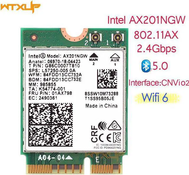 The ® 6 AX201 adapter is a CRF(companion RF module)supporting the integrated wireless 802.11ax solutions from .The solution provides Bluetooth 5 and 2x2 802.11ax .The maximum throughput supported by the 6 AX201 is a speedy 2.4 Gbps(160Mhz). The ® AX201NGW can provide Gigabit download speed1 and dramatically improve your connected experience at home, work, or on the go.