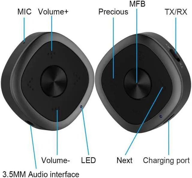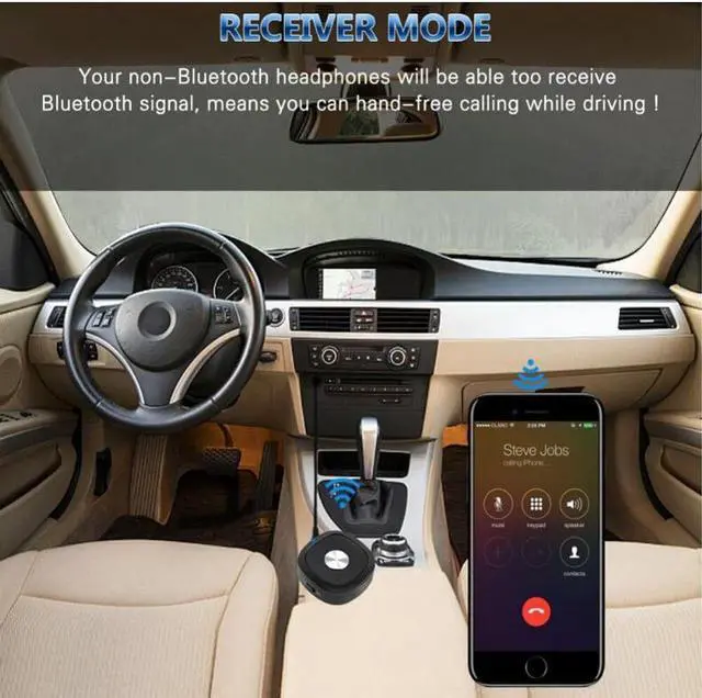 The portable Bluetooth 5.0 transmitter and receiver connects via 3.5mm audio cable and streams audio to your Bluetooth headphones or speakers in TX mode. Set it to RX mode to wirelessly receive audio from iPhone smartphones, iPads or computer in car or home sound system.