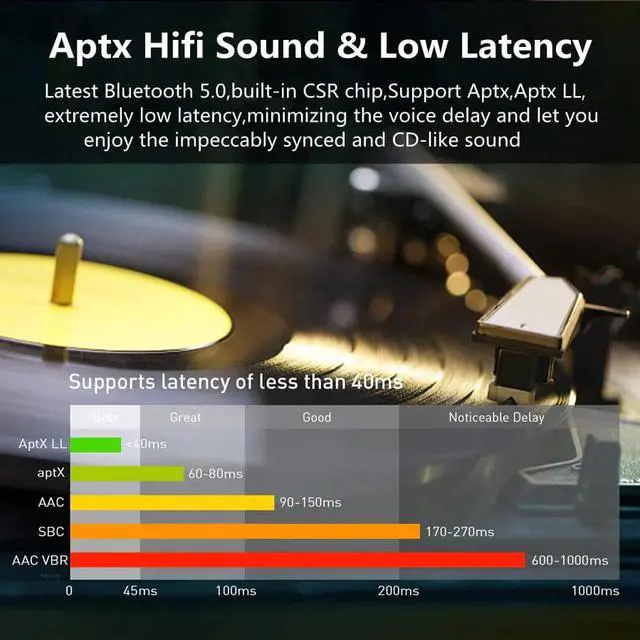 The Ultimate Listening Experience Support low latency, virtually eliminating visual and auditory delays, you can simultaneously steam audio to 2 Bluetooth headsets, making BT-B15 bluetooth headphones become the best choice for watching TV and movies. Note: In order to achieve this low latency, your receiving setup must support low latency.