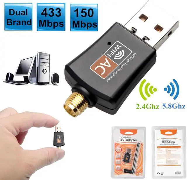 5GHz USB Wifi Adapter 600Mbps Wireless Lan USB PC Wifi Antenna Support Window Linx2.6X Mac OS 802.11AC USB Network Card