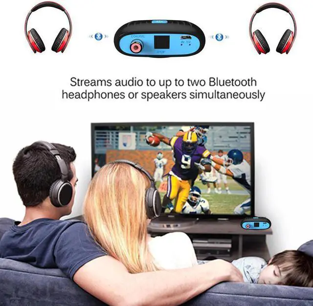 This Bluetooth Transmitter supports to pair with 2 Bluetooth Headphones at the same time. After having a long day, put on your headsets and enjoy a nice movie on TV with your beloved, , and leave a quiet night for your rest family members, no more noise disturbing.