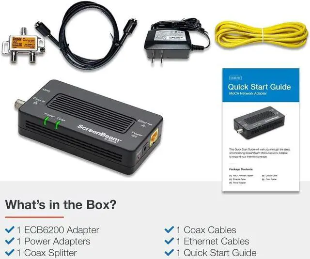USE EXISTING COAX WIRING TO CREATE AN ETHERNET NETWORK to achieve a fast, reliable Ethernet connection between a router and any device with an Ethernet port. MoCA 2.0 technology outperforms wireless for speed, latency, reliability, and security.