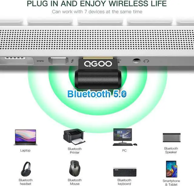 Fast and Further: Fast and further working distance than Bluetooth 4.0 Supports Bluetooth speakers, headphones, headsets, keyboards, mice, Bluetooth printer and stereo headphoneand more. Can work with 7 devices at the same time. mini USB Bluetooth adapter gives you powerful wireless data connectivity between your computer or laptop and Bluetooth enabled devices allowing for seamless connectivity, better productivity, and an uninterrupted workflow.