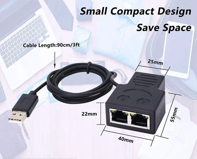 SHARING INTERNET - 10/100Mbps ETHERNET SPLITTER is connected with a router for other wired connections (laptop, game console, printer, etc. ) for 2 devices share the internet at the same time.