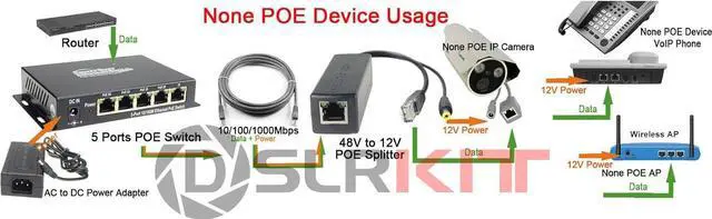 Gigabit Active PoE Splitter Power Over Ethernet 48V to 12V 10/100/1000Mbps