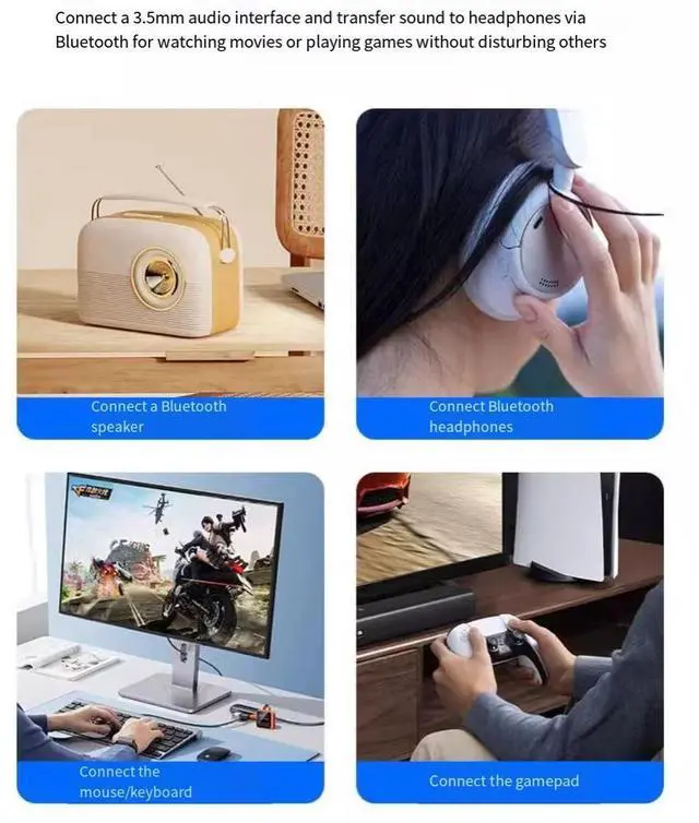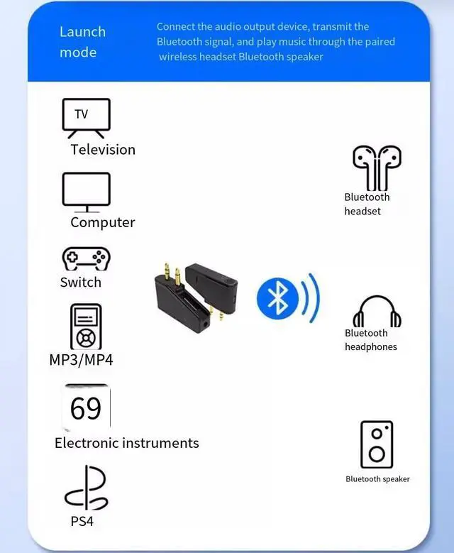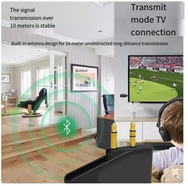 Dual 3.5mm plug, aviation aircraft Bluetooth 5.3 audio conversion transmitter adapter two-in-one Bluetooth transceiver