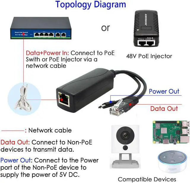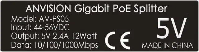 5V DC power output ( 2.4A / 12watts Max. ), 10/100/1000Mbps ethernet data rate, IEEE 802.3 af compliant