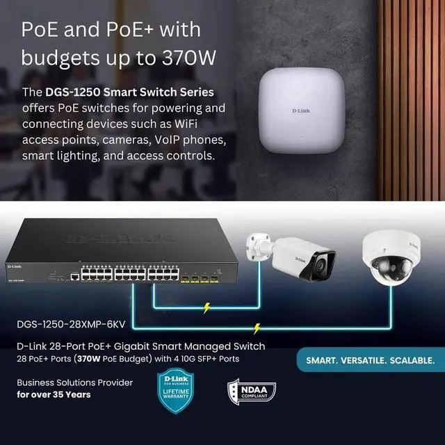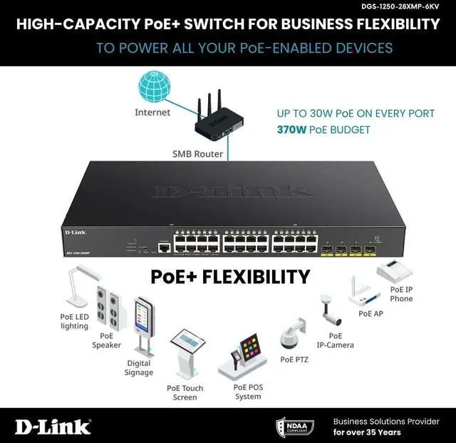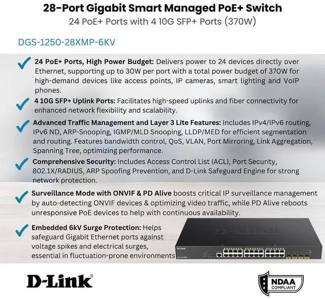 D-Link 28-Port 10-Gigabit Smart Managed PoE Switch DGS125028XMP6KV
