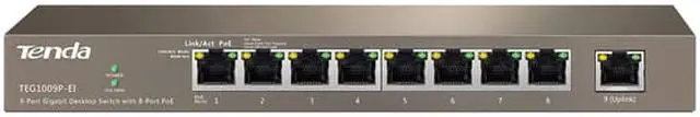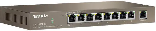 This swtich provides nine GbE Ethernet ports, supports layer 2 wire speed forwarding on each port, and fully meets the needs of Gigabit WLAN, HD surveillance and more.