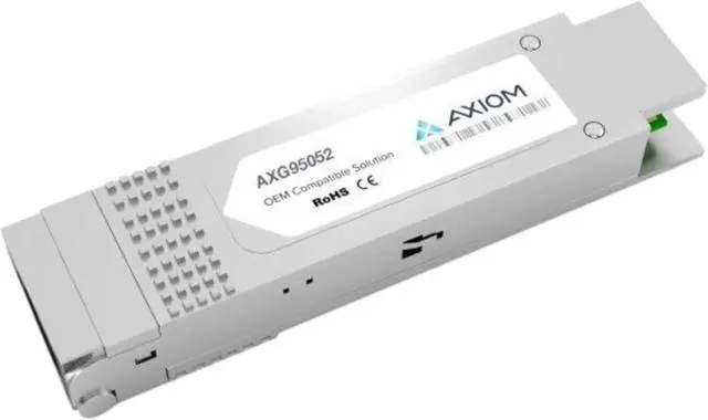 Axiom SFP+ Transceiver Modules are 100% compatible in all OEM applications They are pre-configured with an application specific code to meet the requirement set forth by the router and switch OEMs Axiom compatible transceivers perform fit and function identically when compared to Original Transceivers Axiom brand transceivers also function with other brands within the same network 100% Compatibility in all OEM applications Part number and unique product serialization Eliminates any network communication conflicts and provides easy identification Fully compliant with the multi-sourcing agreement (MSA) which enables them to work in all MSA compliant platforms Application/Usage Optical Network Application/Usage Data Networking Product Type SFP+ Interfaces/Ports Details 1 x 10GBase-LR Product Type SFP+ Compatibility MSA Compliant Manufacturer Part Number AXG95052 Interfaces/Ports Details 1 x LC 10GBase-LR Network Limited Lifetime Network Technology 10GBase-LR Manufacturer Axiom Memory Solutions Product Name Mellanox SFP+ Module Network Technology 10GBase-LR Brand Name Axiom Brand Name Axiom Ethernet Technology 10 Gigabit Ethernet Media Type Supported Optical Fiber TAA Compliant Yes Yes Environmental Certification RoHS Ethernet Technology 10 Gigabit Ethernet Media Type Supported Optical Fiber Fiber Mode Supported Single-mode TAA Compliant Yes
