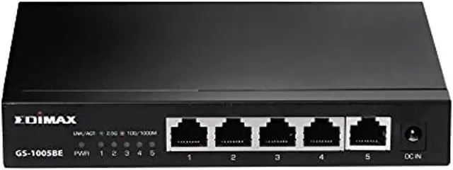 Upgrade your existing Ethernet network with up to 2.5G bps of performance with 5 full 2.5 Gigabit high speed ports on the EDiMAX GS-1005BE 5-sport switch. | Easy upgrade the speeds of your Ethernet network by keeping your existing CAT-5E cabling infrastructure as this switch doubles the performance of Gigabit Ethernet. Ideal for SOHO servers, NAS, workstations and other network attached devices. | Works with CAT-5E, CAT-6, CAT-6A, CAT-7, and CAT-8 cabling infrastructures and is backwards compatible with gigabit Ethernet equipment | High performance and highly reliable with 12K jumbo frames support and full-duplex ports.