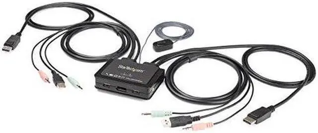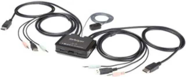 The SV211DPUA4K 2-Port 4K60Hz DisplayPort® Cable KVM Switch with Audio and Remote Switching Control gives you control of two DisplayPort, USB equipped computers with a single monitor, keyboard, mouse and audio peripheral set.