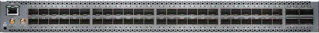 A 10GbE/100GbE data center access switch, the QFX5110-48S offers 48 small form-factor pluggable plus (SFP+) transceiver ports and four QSFP28 ports, that can be configured as 4x40GbE or 4x100GbE ports, with a high aggregate throughput per switch. For added flexibility, each QSFP28 port can also be configured as 4x10GbE ports, using breakout cables, increasing the total number of supported 10GbE ports to 64 per switch.