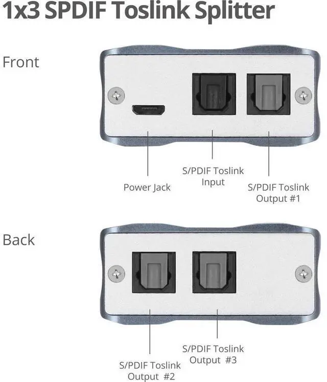 Splits one digital Toslink S/PDIF audio output to three digital Toslink S/PDIF audio outputs