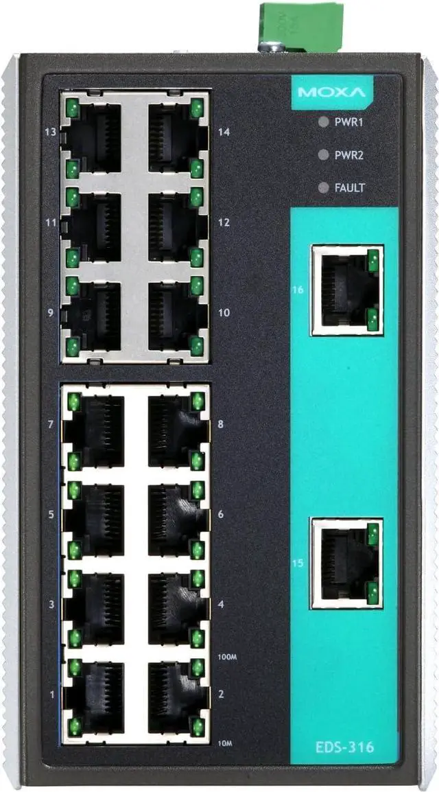 MOXA EDS-316 - 16 Ports Unmanaged Ethernet Switch with 16 10/100BaseT(X) Ports, 0 to 60°C Operating Temperature