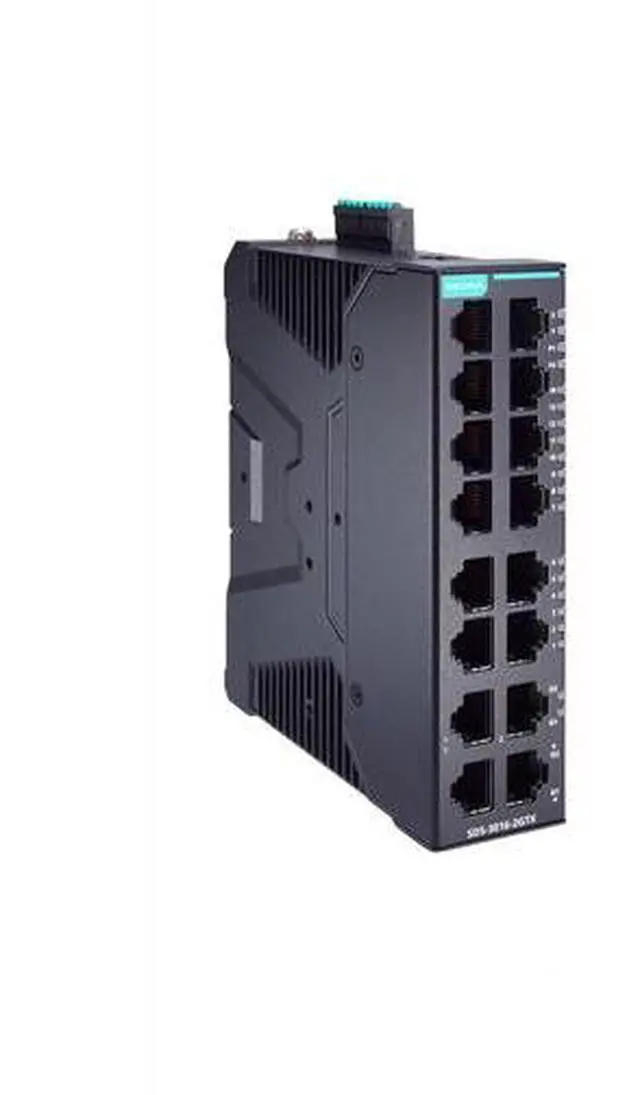 Moxa SDS-3016-2GTX - Compact industrial smart Ethernet switch with 14 10/100BaseT(X) ports, 2 10/100/1000BaseT(X) ports, dual 12