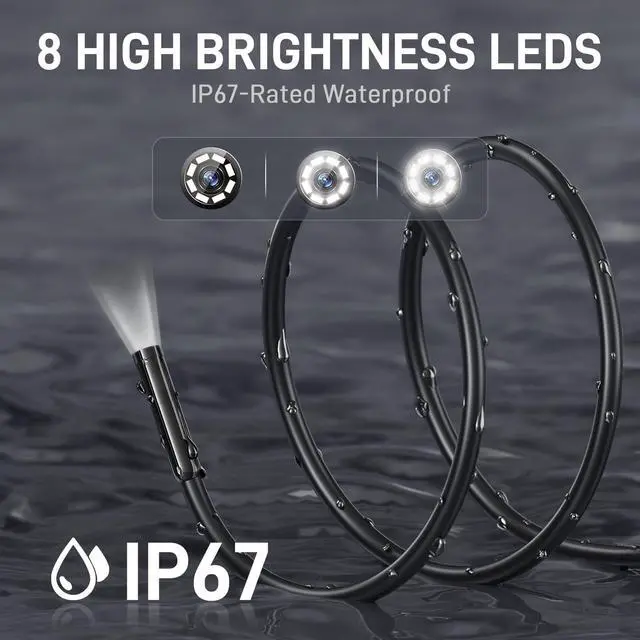 Adjust 8 LED lights with a dial for the perfect brightness in any inspection, ensuring clear visibility in dark environments.
