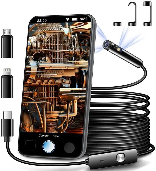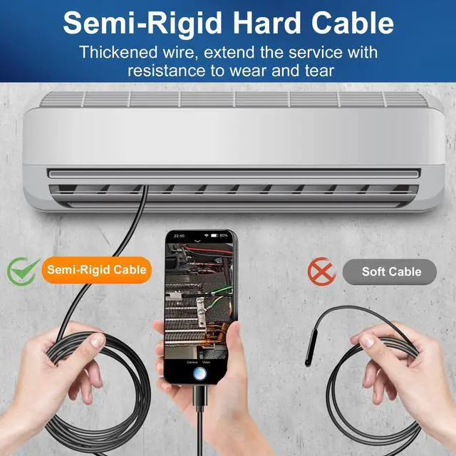 The endoscopes camera has a 5M/16.5FT long semi-rigid cable, giving you more convenient control during operation. Suitable for car repair, wall inspections, pipes inspections, sewers, cleaning dryer vents and more