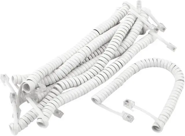 Unique Bargains 8 Pcs 1.5M Stretchable RJ9 4P4C Plug Coiled Telephone Handsets Cable Cord White