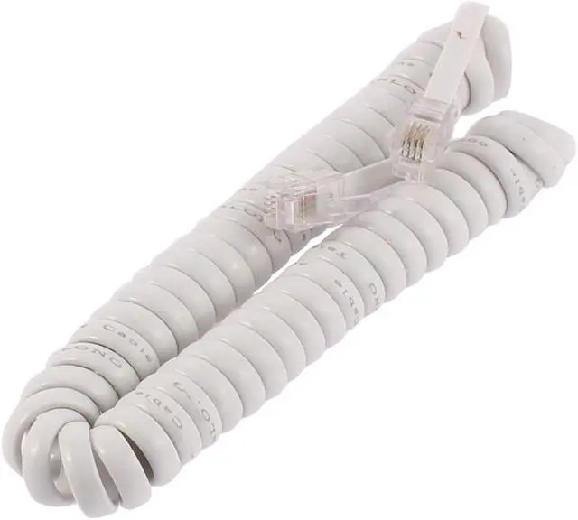 Unique Bargains Telephone Handset Receiver Cord Phone Coil Cable 4P4C White 2M Length