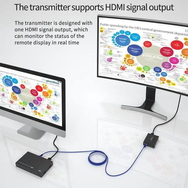 HDMI LOOP OUT. The additional HDMI output on the transmitter is more suitable for your monitor, and it is easy to view the playback content of your computer host and TV box.
