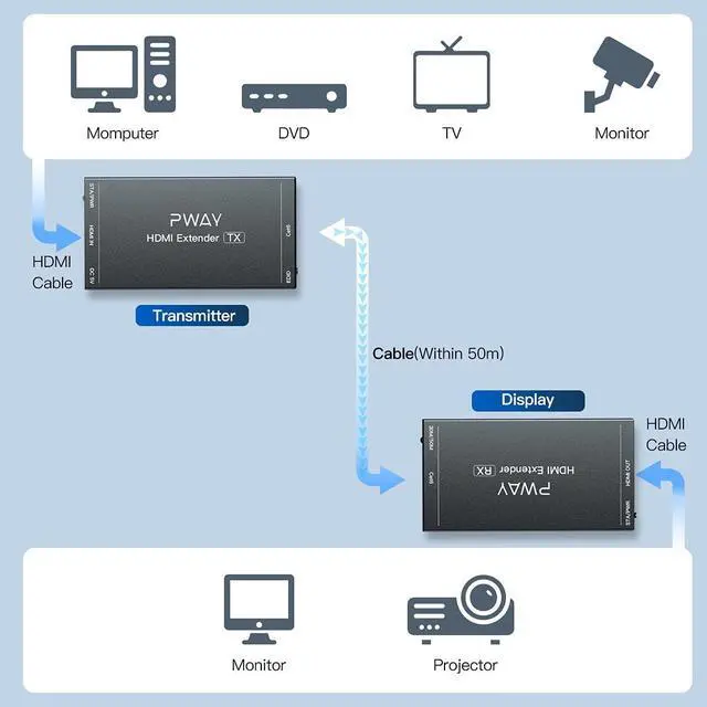 Long Distance HDMI Extender: Transmit HDMI signal up to 60 meters by Cat5e/6.