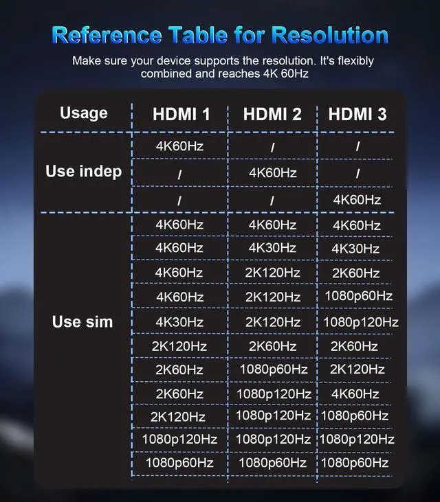 4K UHD Visual FeastExtended Display with this dp to hdmi adapter. Transfer 4K(3840x2160)@60Hz content directly to your monitor/TV/projector. Supports HDCP 2.2 and complies with DP 1.2 standard. Single DP output resolution up to 4K@60Hz, backward compatible with 2K@120Hz/60Hz, 1080P@120Hz/60Hz; 3 HDMI screen resolution up to 4K@60Hz/30Hz.(Make sure your input and output devices both support the same resolution)