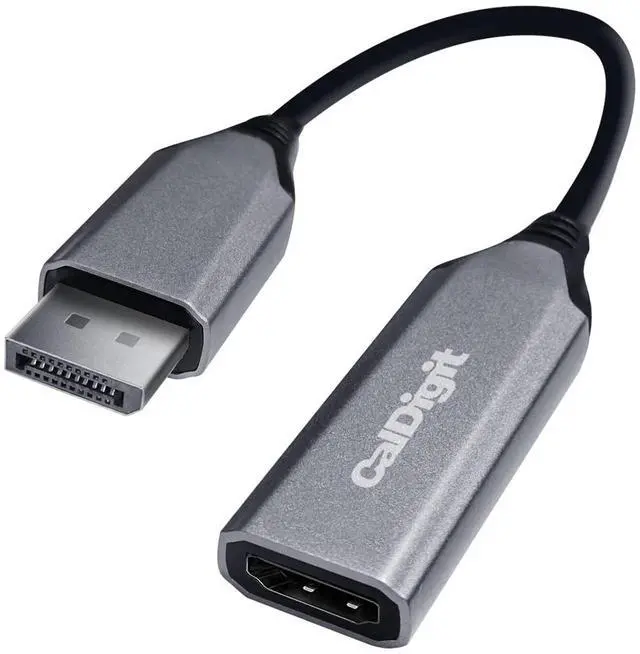 The CalDigit DP2.0 to HDMI 2.1 adapter is ideal for use with any DisplayPort video output that you want to convert to HDMI, such as a HDMI monitor or TV. This adapter is also fully compatible with the CalDigit TS4 Thunderbolt 4 and TS3 Plus Thunderbolt 3 docks in order to connect a HDMI monitor via the DisplayPort output. - Connect Monitor or TV up to 8K 60Hz (7680x4320 60Hz with DSC support, 7680x4320 30Hz without DSC support ) - Convert DisplayPort to *HDMI - Compatible with Thunderbolt 3, Thunderbolt 4, and USB-C docks to convert DP to HDMI - DisplayPort 2.0 - HDMI 2.1 - Active Adapter - Plug & Play - Mac & PC Compatible - HDCP Compliant - AMD Eyefinity Compatible, HDR, 10 bit color