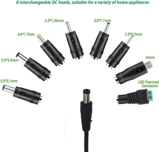 Ce qui le rend adapté à 95% des appareils ménagers ca/cc, tels que l'électronique domestique 3V à 12V, tablette PC, balances, routeurs, haut-parleurs, bandes lumineuses LED, système de caméra de vidéosurveillance, caméra de chargement USB, et ainsi de suite.