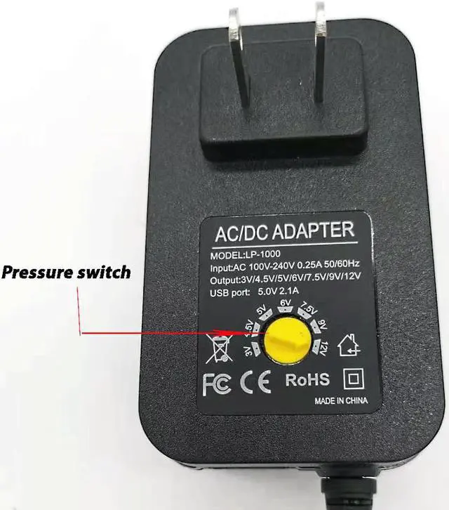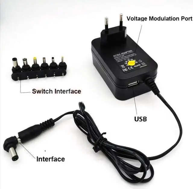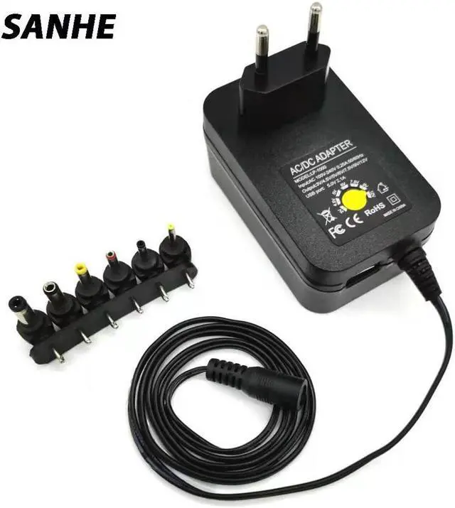Tension de sortie: 3V 4.5V 5V 6V 7.5V 9V 12V (réglage manuel)