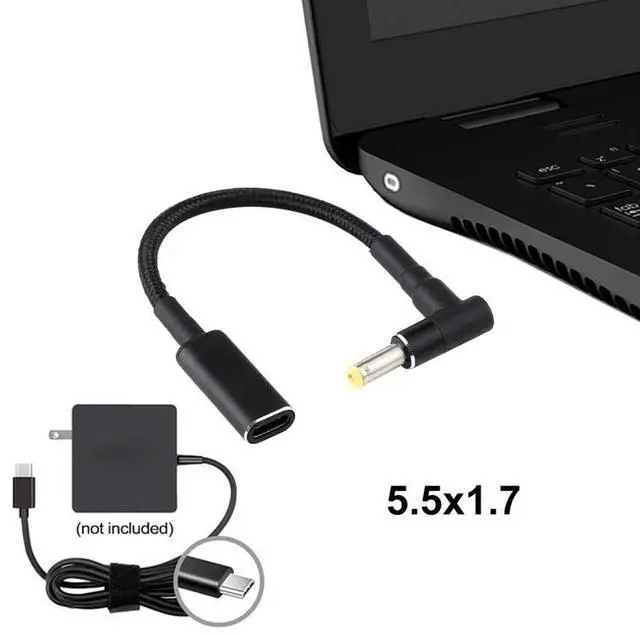 PD 100W 18.5-20V 4.8 x 1.7mm Elbow to USB-C / Type-C Adapter Nylon Braid Cable