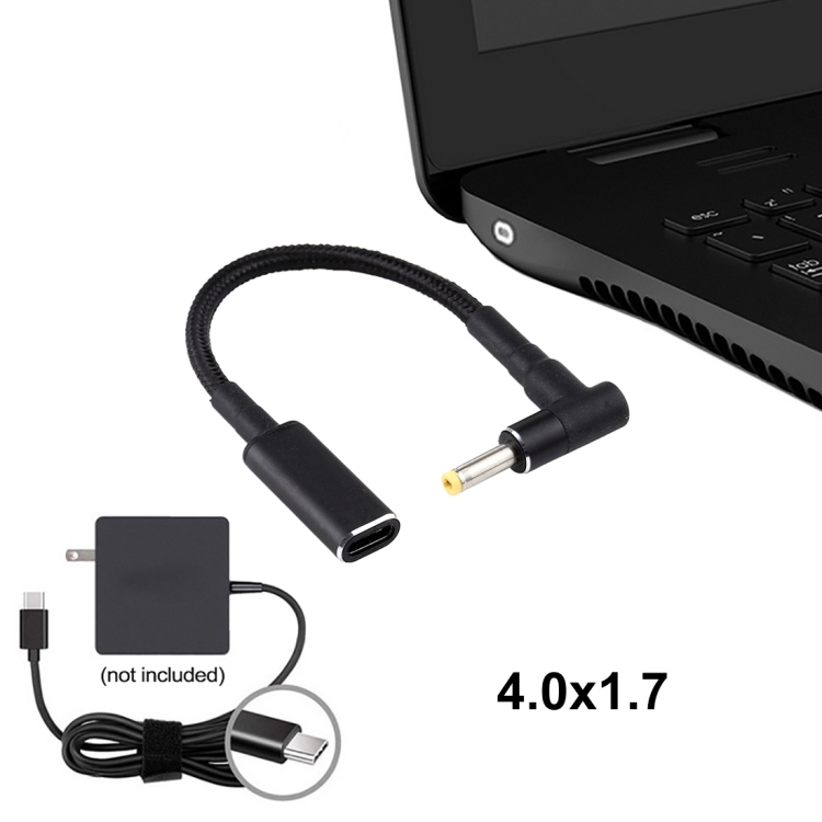 4.0 x 1.7mm Elbow to USB-C / Type-C Adapter Nylon Braid Cable