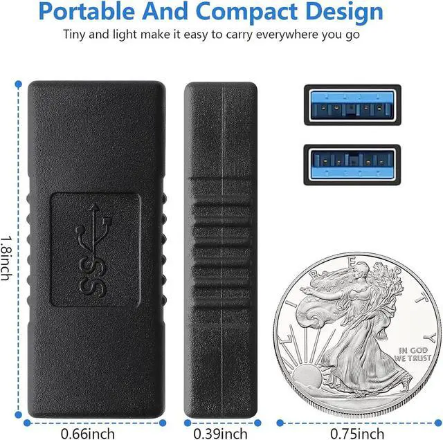 Zell Usb 3.0 Connector Female To Female Adapter Usb 3.0 Coupler Adapter Converter Bridge Extension Coupler (Pack Of 3, Black)