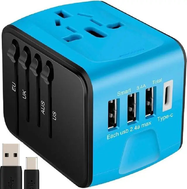 Universal Charger Adapter: Is your all-in-one solution for powering your devices while traveling abroad. Electric Converter for International Travel, 3 USB and 1 type C ports. Includes Super Fast Charging Type C 5A Usb Charger Data Cable