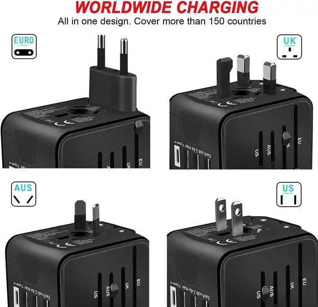 Global Travel Plug Adapter Compact and Portable: Its sleek and portable design easily fits into your travel bag. More than 150 countries with various electrical connectors