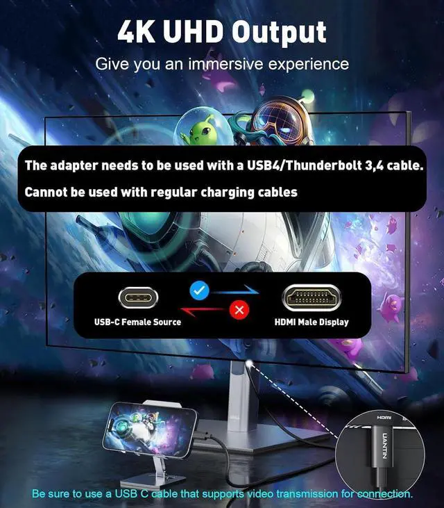 USB C Female to HDMI Male Adapter | 4K 60Hz Uni-Directional USB Type C 3.1 Source to HDMI Monitor Converter USB C Adapter for USB4/Thunderbolt 3 4 Cable - Not HDMI to USB C