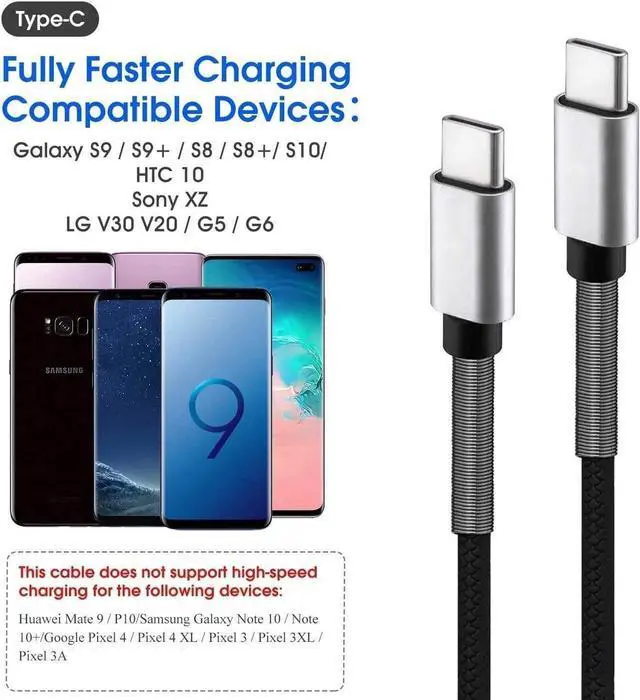 (Note: not support vedio output)Certified Safety and Charging StabilityEquipped with an exclusive E-marker smart chip that intelligently matches the required current the USB C PD cable has been certified for electronic safety by the appropriate standards. And the 56K resistor supports seamless conduction and smooth charging helping to protect your devices from potential damage during current discharge. You can use it to charge any device with confidence. Amazing durabilityThe USB C Charger Cable features thickened TPE insulation and precision interlayer welded joints along with a perfectly spring-loaded protective outer layer which makes it more durable and stronger than ordinary cables as well as flexible and kink-free. The Type C Charging Cable stands up to a variety of daily connection needs and long-term use. Universal CompatibilityThe Fast Charging Cord Type C is compatible with Macbook Pro/Air Elitebook Zbook XPS/Inspiron/Latitude ThinkPad iPad Pro/Mini/Air Fire 7/HD 10 Galaxy Tab S8/S8 Plus TAB PRO/10/10S Galaxy S23/S22/S21/Z Fold/Z Flip Surface Go 3/2 Google Pixel LG G8/7 LG V60/V50/V40 etc. What You Get60W USBC to USBC Fast Charging Cable 10Ft*2.