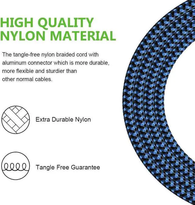 Designed with an ultra-durable nylon braided exterior. Tangle-free PVC charger cables withstand a variety of everyday connection needs and long-term use.